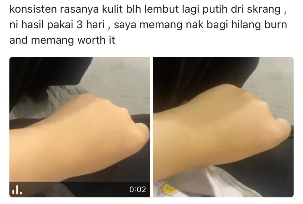 Rasa tak sabar nak bangun pagi dan tengok cermin sebab nampak perubahan tona kulit yang makin cerah.